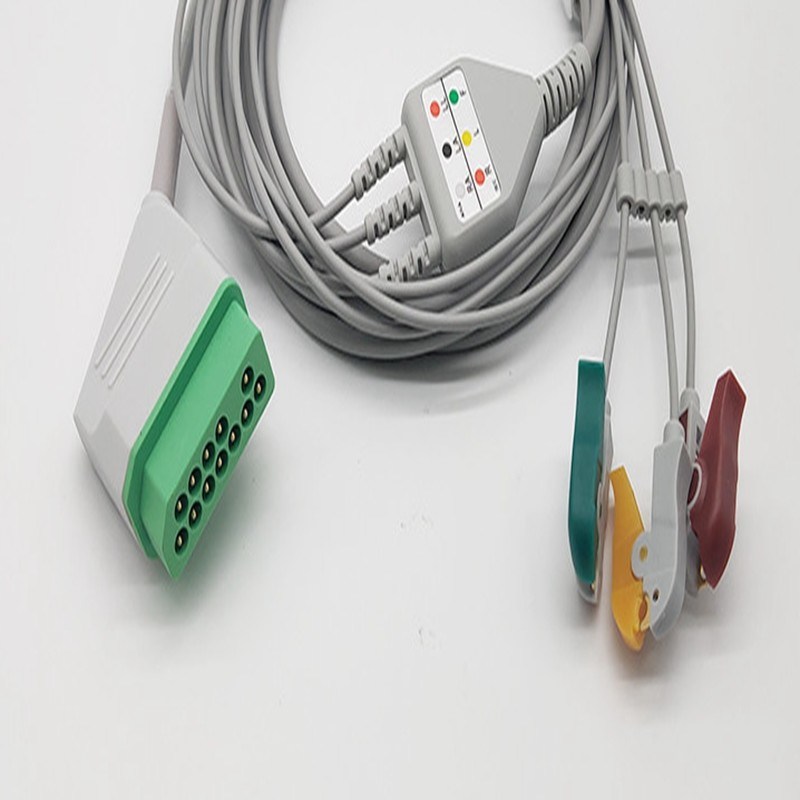 2Configuração do chumbo: os cabos de ECG são concebidos para acomodar diferentes configurações de chumbo, dependendo do número de chumbos necessários para fins de monitorização ou diagnóstico.Configurações de chumbo comuns incluem 3-chumboCada configuração corresponde a uma colocação específica do eletrodo para capturar uma visão diferente da atividade elétrica do coração.