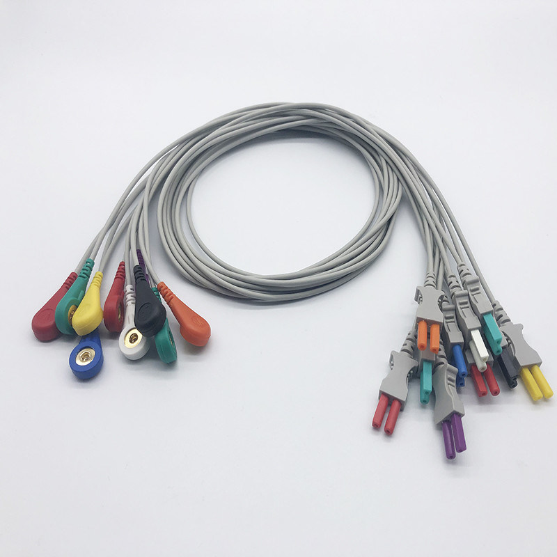 O cabo de ECG normalmente consiste em vários fios de chumbo com conectores específicos em uma extremidade que se ligam aos eletrodos colocados no corpo do paciente.A outra extremidade do cabo se conecta à máquina de ECG ou monitorO cabo transporta os sinais elétricos gerados pela actividade cardíaca dos eletrodos para a máquina, permitindo que a máquina exiba e registe a forma de onda do ECG do doente.