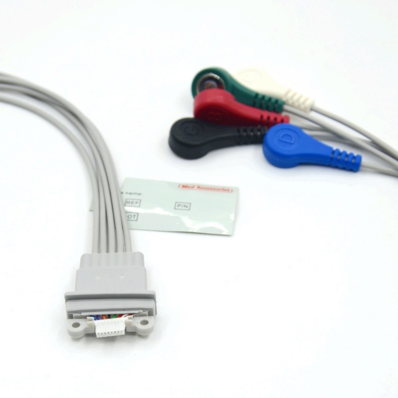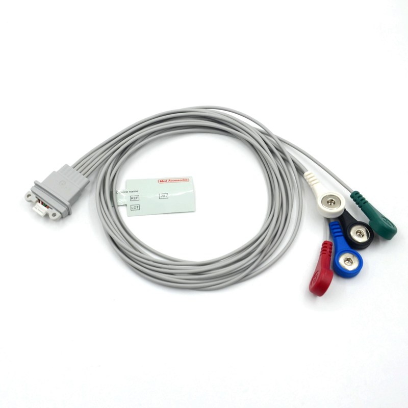 Cabo de tronco e fio de chumbo do ECG: Estes cabos e fios de chumbo são usados para monitoramento de eletrocardiograma (ECG). Eles conectam os eletrodos do ECG ao monitor do paciente,que permite a medição e o registo da atividade elétrica do coração.